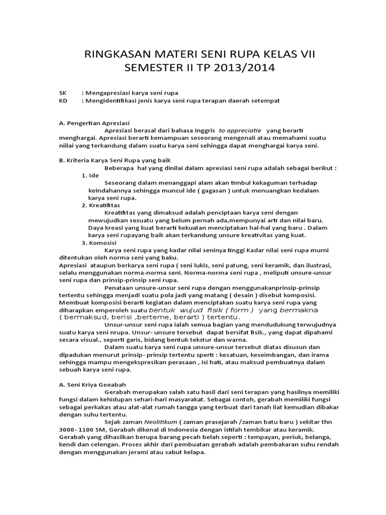 Materi seni budaya kelas 7 semester 1 kurikulum 2013. We did not find results for: Check spelling or type a new query. Maybe you would like to learn more about one of these?