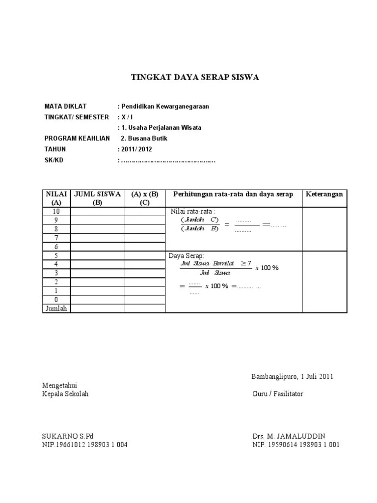 Contoh Format Daya Serap Siswa - Format Analisis Hasil Ulangan Dan Program Perbaikan Pengayaan Buku Kerja Guru 3 Rpp 1 Lembar : Diharapkan dengan contoh format daya .