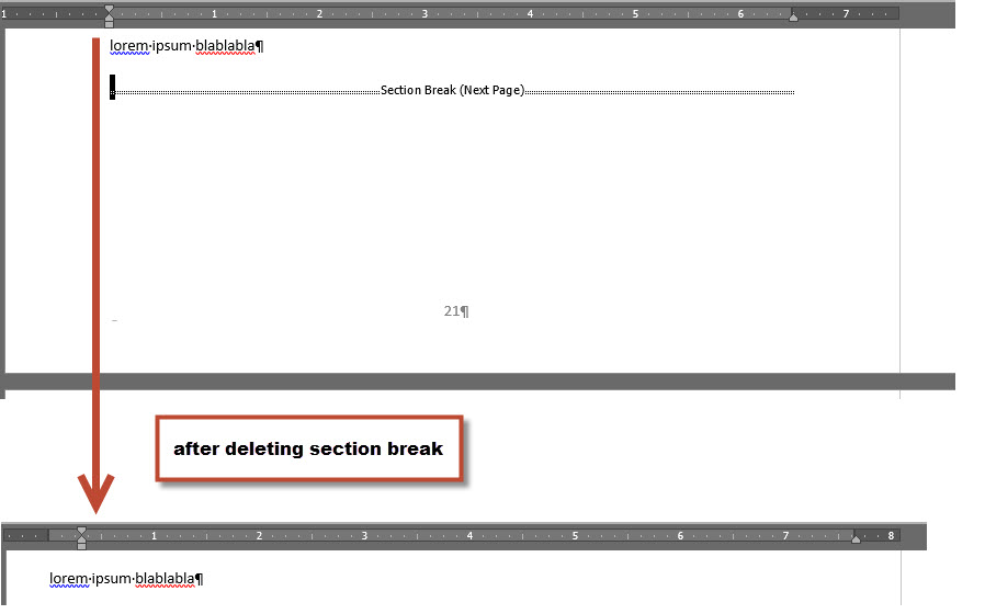 This tip (9500) applies to microsoft word 2007, 2010, 2013, 2016, . A continuous section break is useful when you want to change the formatting, such as changing the number of columns, without starting a new page. If you delete a section break, the text that preceded the deleted break will take on the properties of the section that followed it. Word 2013 enables you to create several types of section breaks. Inserting a section break to begin a new section is easy, but do you know how to easily delete section breaks from a document?