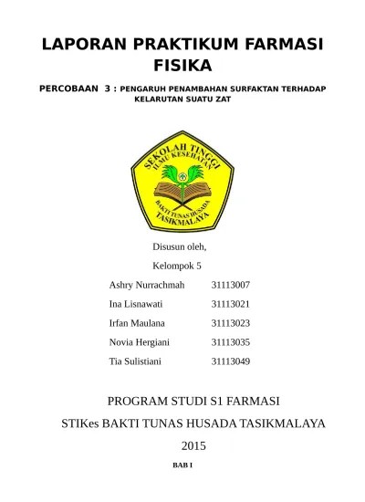Golongan i c iman bagus wicaksono amalina firdaus evi . 7/30/2019 laporan resmi stabilitas obat. Karena itu, diperlukan uji kestabilan terhadap sediaan tersebut. Laporan praktikum farmasi fisika terdiri dari 2 jenis, yaitu : Stabilitas obat adalah kemampuan suatu produk.
